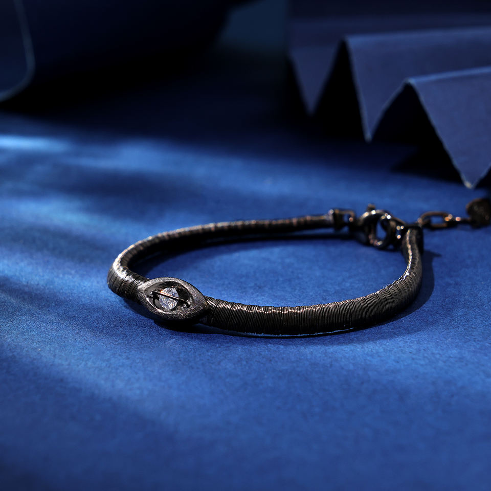 เครื่องประดับแฟชั่นส่งเสริมการขาย เงินแท้ 925 ชุบโรเดียมสีดำ ประดับเพชรซิคอน ไข่มุกน้ำจืดทรงช่อง สร้อยข้อมือรูปดวงตาสุดอินเทรนด์