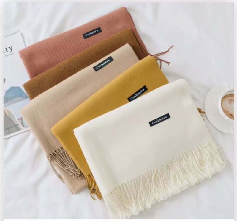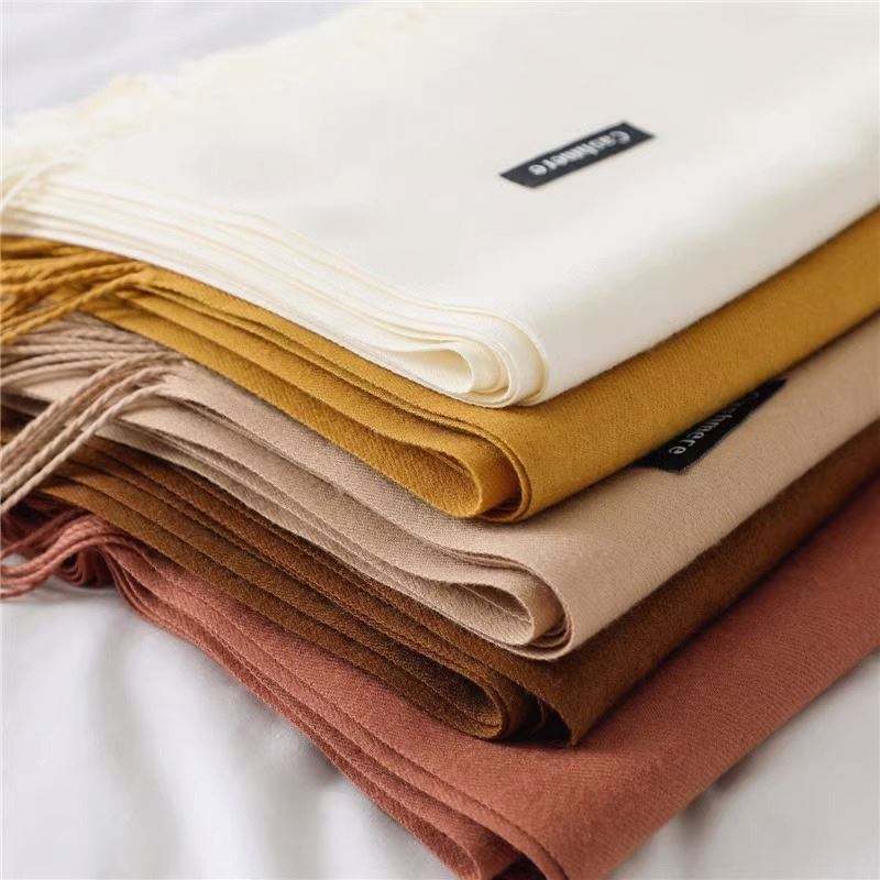 ผ้าคลุมศีรษะแฟชั่นมุสลิม ผ้าแคชเมียร์ ผ้าพันคอ ผ้าคลุมไหล่สำหรับผู้หญิง สีพื้น ผ้าพัชมีนา พร้อมพู่ห้อย รุ่น YHK0059