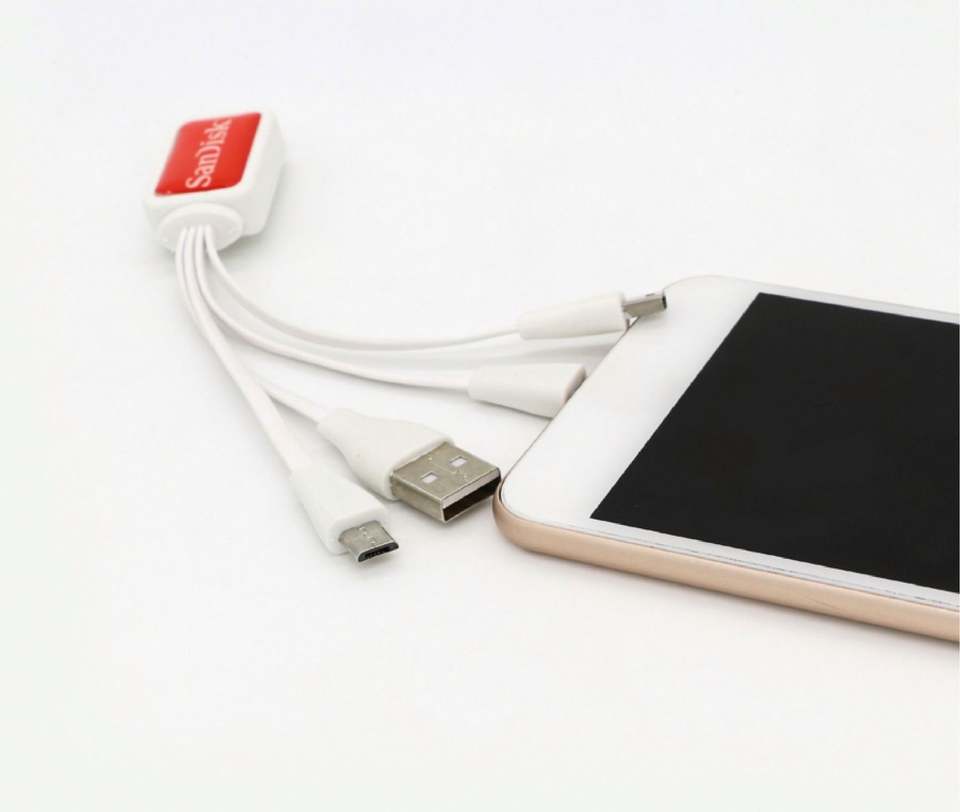 ของขวัญส่งเสริมการขาย โลโก้สั่งทำได้ สายชาร์จ USB แบบพกพาอเนกประสงค์ 4 in 1 ชาร์จเร็ว พร้อมพวงกุญแจ