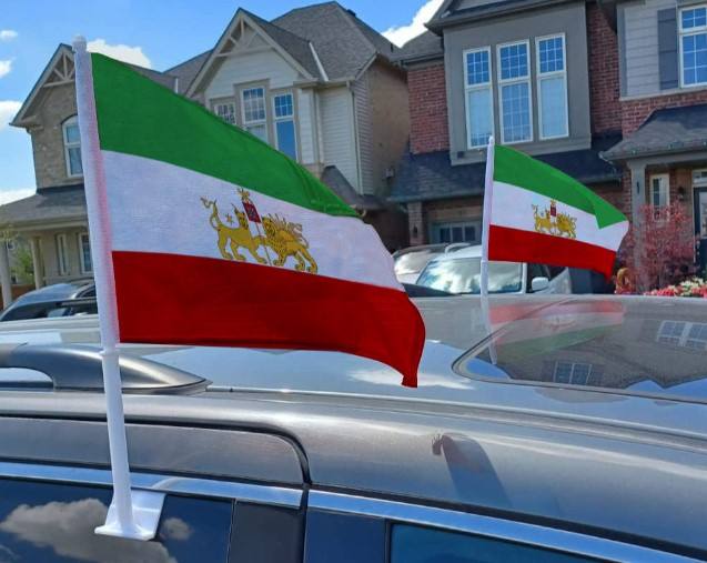 ธงชาติอิหร่านคุณภาพสูงพร้อมลายสิงโตและมงกุฎ รุ่นหลังการปฏิวัติรัฐธรรมนูญ ธงติดรถยนต์ลายสิงโตและพระอาทิตย์