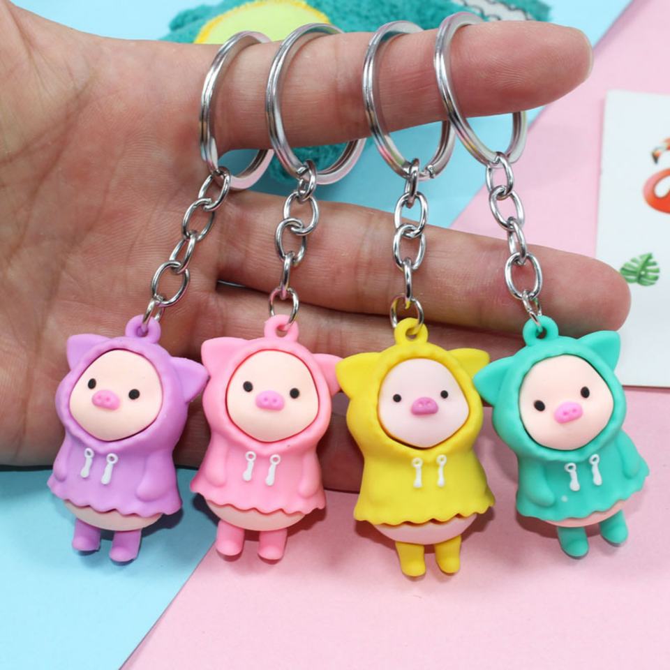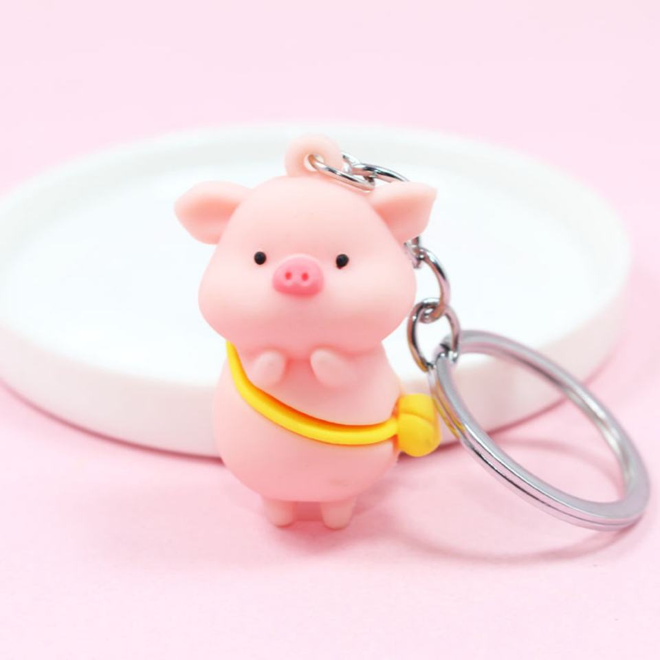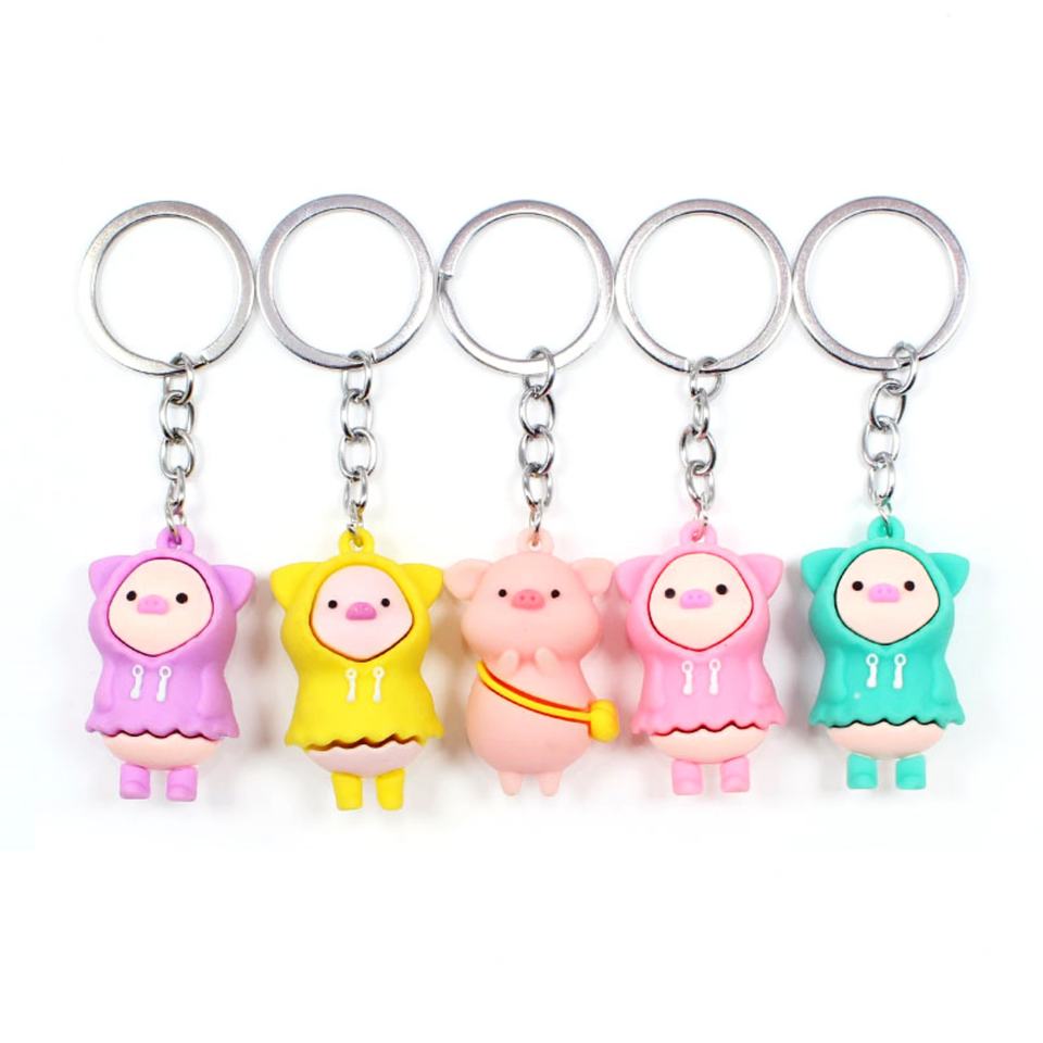 พวงกุญแจโปรโมชั่นแบบกำหนดเอง 3 มิติ รูปการ์ตูนหมูน่ารักสีชมพู ทำจากยาง PVC นิ่ม