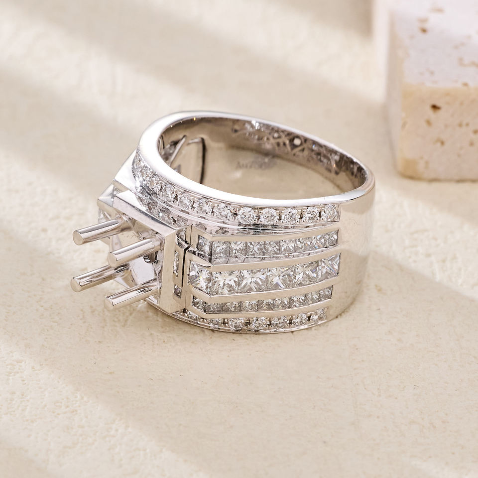 เพชรสีขาว18K 2-3กะรัตประดับเพชรกึ่งเพชรสีทองขาว18K สำหรับผู้ชายดีไซน์สวยไม่เหมือนใครใส่ประจำวัน