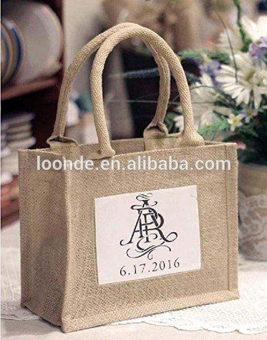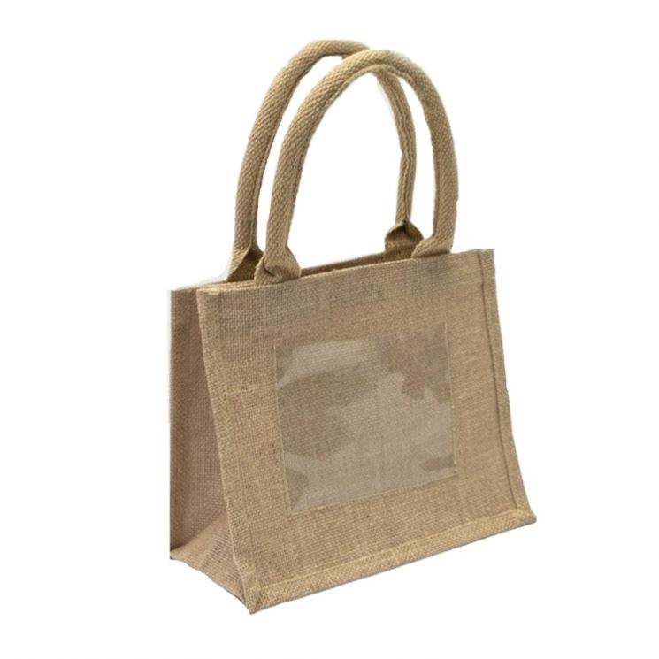 Promotional Mini Burlap Wedding Favor Jute Tote Bags with clear Plastic Pocket