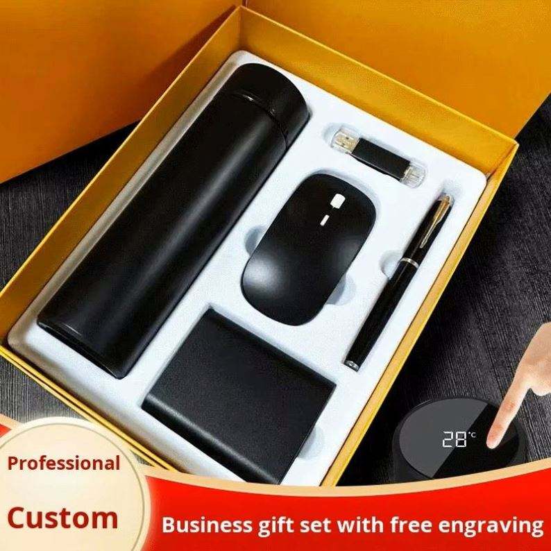 ชุดของขวัญ 5 in 1 ประกอบด้วยเมาส์ พาวเวอร์แบงค์ ขวดน้ำ ปากกา และยูเอสบี สำหรับแจกเป็นของที่ระลึกพนักงาน ของขวัญสำหรับโรงเรียน สำนักงาน และธุรกิจ