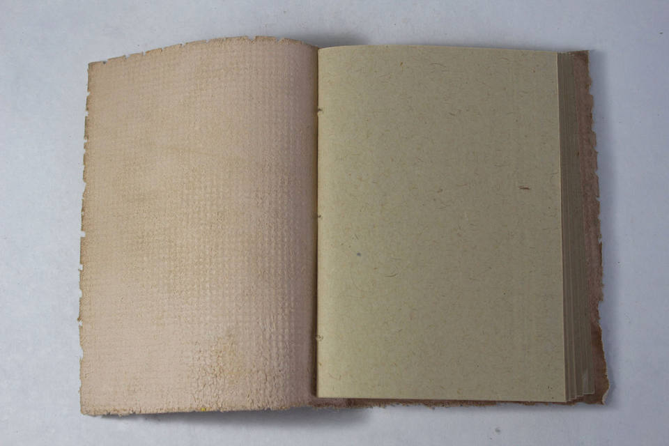 สมุดบันทึกปกหนังทำจากเส้นใยปอกระเจา ดีไซน์ลายนูน ปกหน้าสีธรรมชาติ แบบเย็บมือ พร้อมดีไซน์ลายผ้ากระสอบ สำหรับโปรโมชั่น