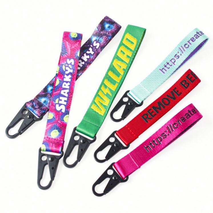 พวงกุญแจสายคล้องมือแบบผ้าโพลีเอสเตอร์ปักลายพร้อมโลโก้โลหะสั่งทำพิเศษ