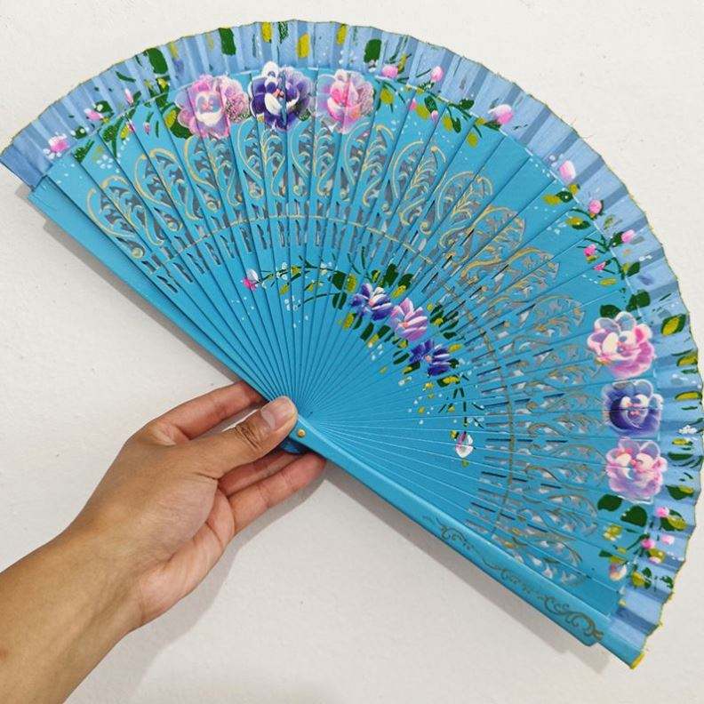 พัดพลาสติกพับได้แบบพกพา ลายดอกไม้ พิมพ์ลายแบบซับลิเมชั่น งานฝีมือไม้ไผ่ ออกแบบได้ตามต้องการ