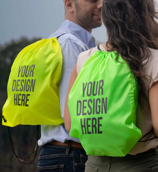 กระเป๋าโปรโมชั่นหลากสี กระเป๋าช้อปปิ้งโพลีเอสเตอร์ไนลอน กระเป๋าเป้แบบไม่ถักทอ มีเชือกผูก ปรับแต่งโลโก้ได้