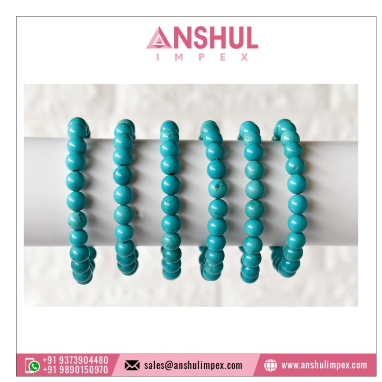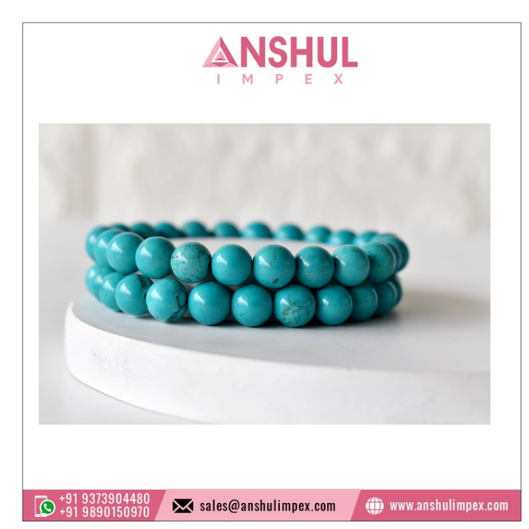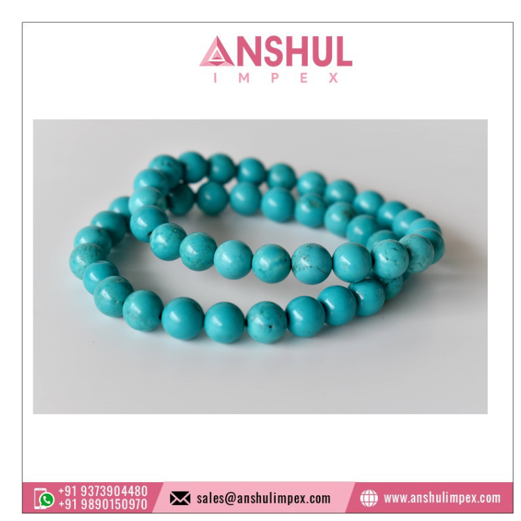 โปรโมชั่นที่มีคุณภาพสีฟ้าบำบัด7.5in เทอร์คอยส์ Howlite รอบพลอยมือสร้อยข้อมือลูกปัด
