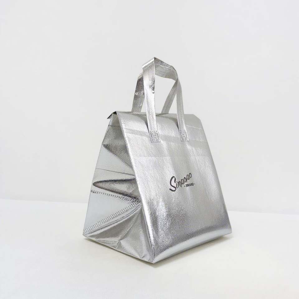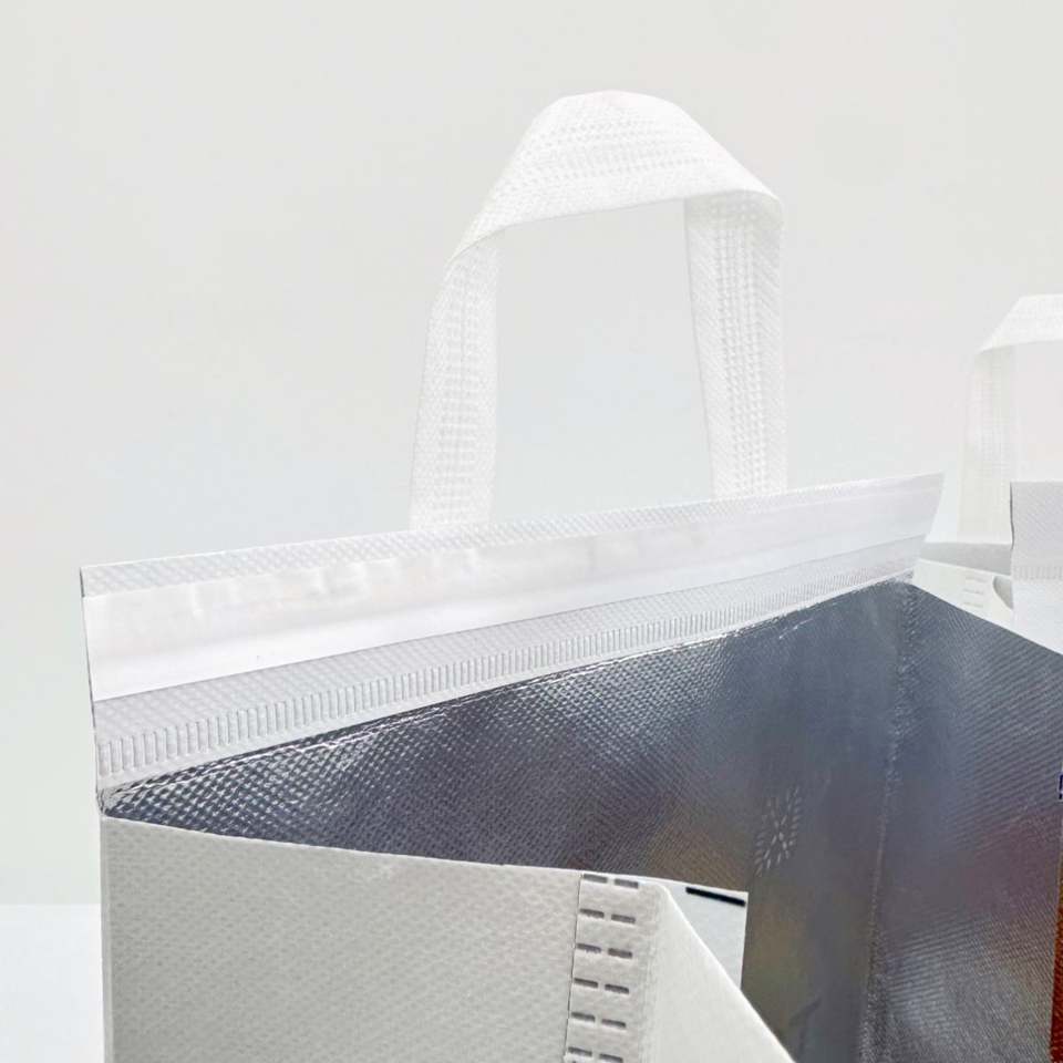 กระเป๋าเก็บความร้อนสำหรับอาหารแบบใช้ซ้ำได้ รับทำโลโก้ กระเป๋าเก็บอุณหภูมิแบบขายส่ง ขนาดใหญ่และเล็ก กระเป๋าเก็บความเย็นแบบไม่ทอสำหรับใส่อาหารกลับบ้าน