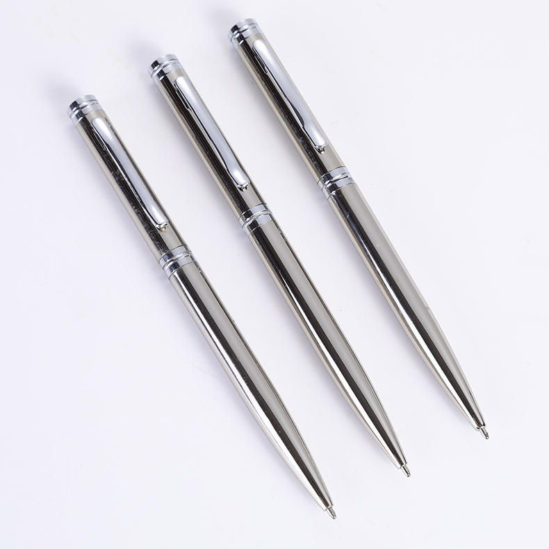 ปากกาลูกลื่นทำจากโลหะสีเงินมีโลโก้ออกแบบได้ตามต้องการสำหรับการโฆษณาให้ความรู้สึกในวัง