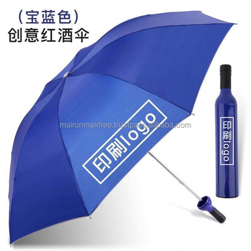 ร่มพับสามตอนกันลม รูปทรงขวดไวน์ สำหรับผู้ชายและผู้หญิง ร่มธุรกิจขนาดใหญ่ สั่งทำโลโก้ได้