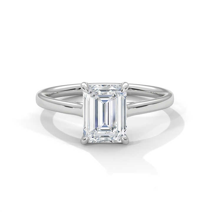 แหวนหมั้นเพชรทรงเหลี่ยมมรกตแบบฝังหนามเตย ผลิตจากทองคำขาว 14k แท้ คุณภาพสูง ได้รับการรับรองจาก GRA Destiny Jewelry