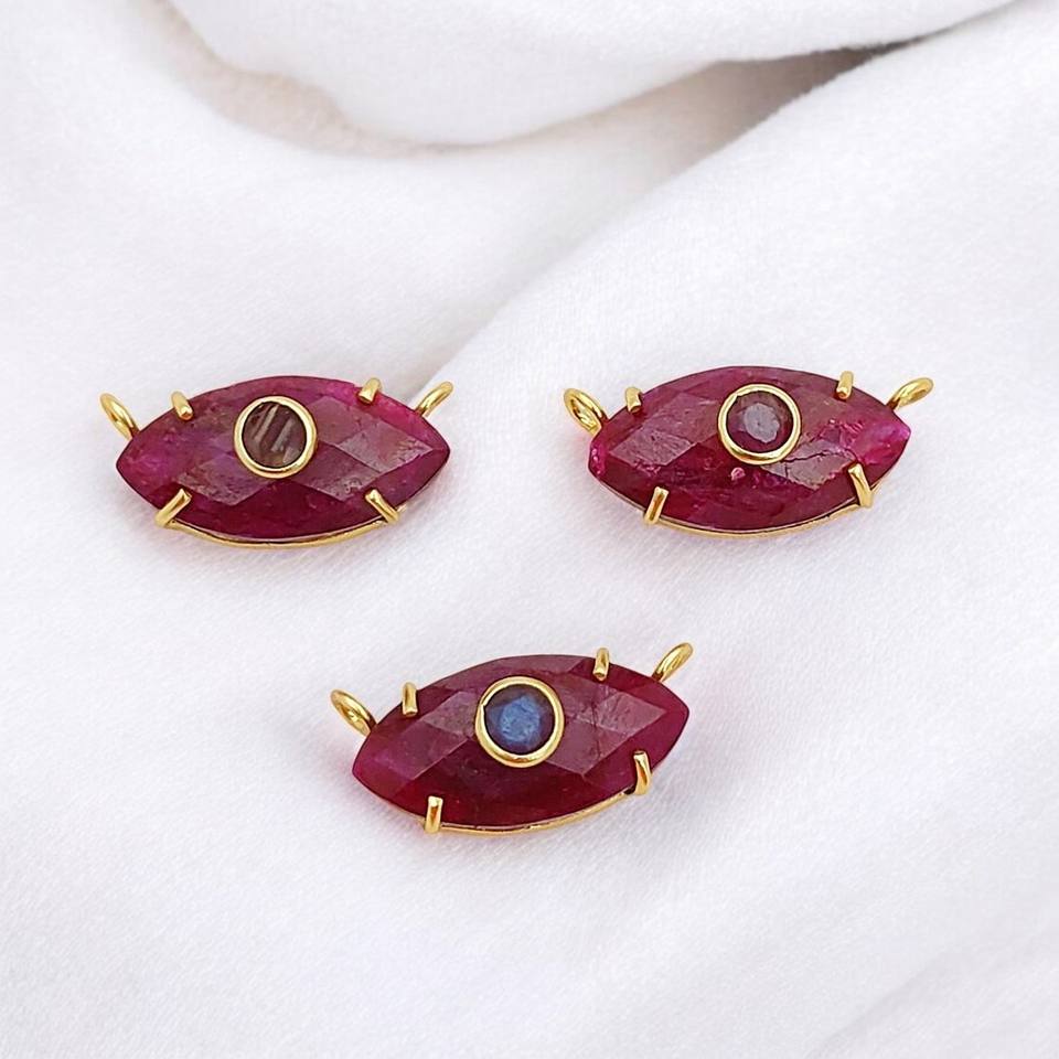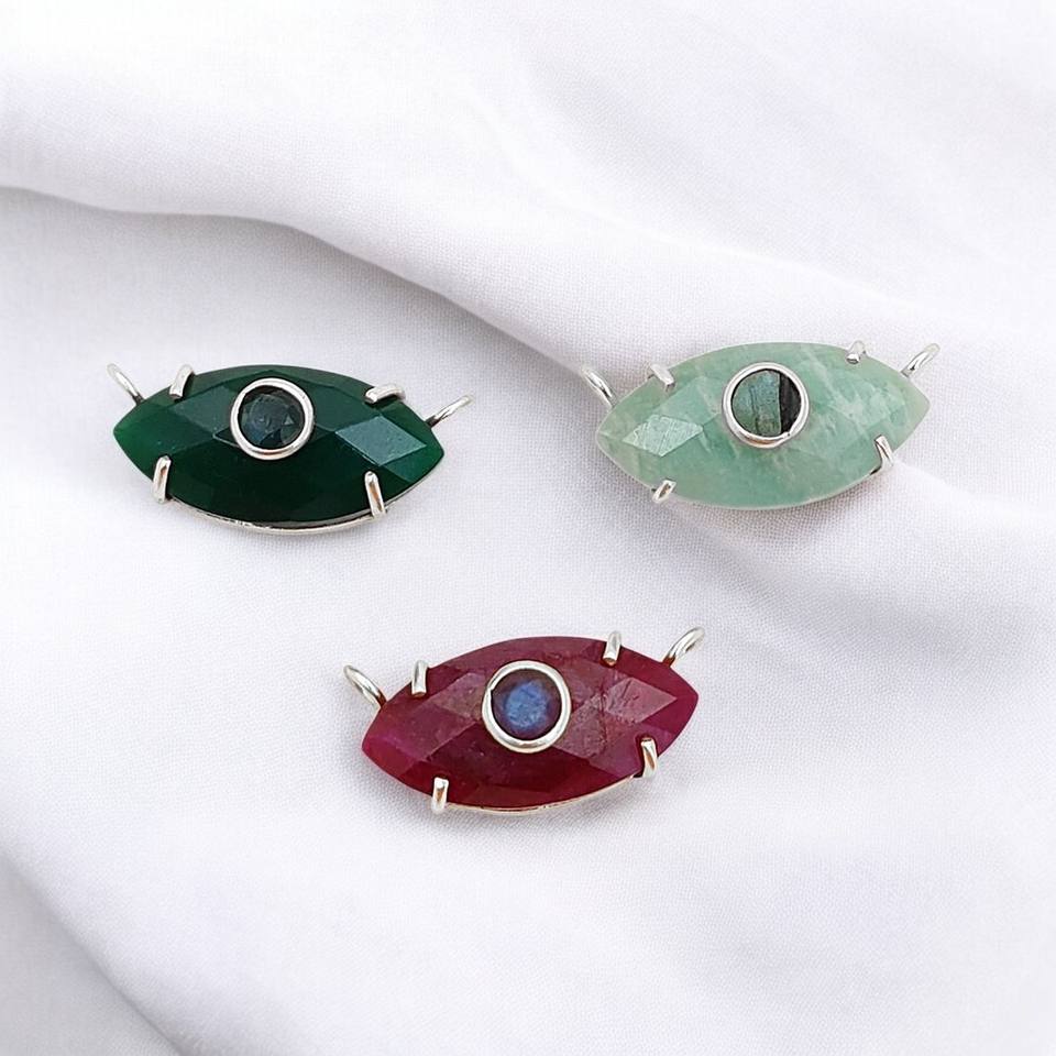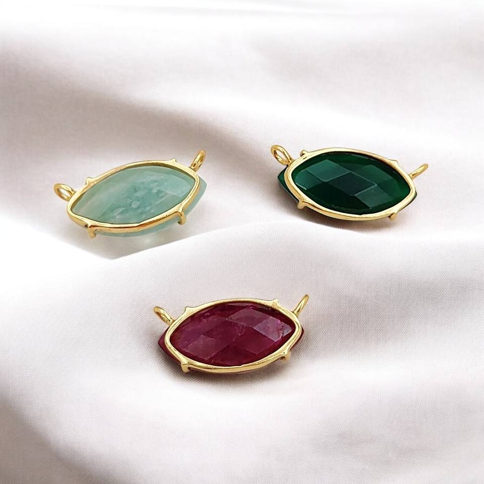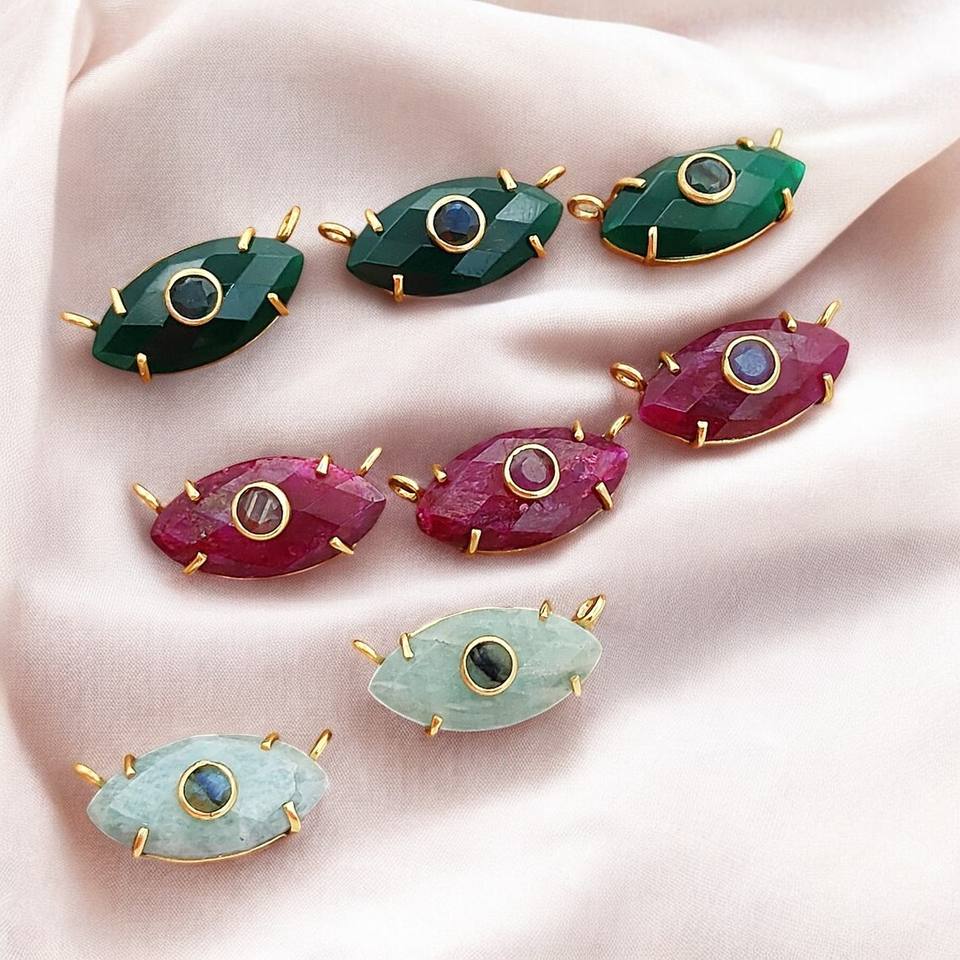 ชุดง่ามจี้ตาอัญมณีขนาด19x9มม. 925สเตอร์ลิงชุบทองทำด้วยมือจี้หินคู่เครื่องประดับป้องกันจี้