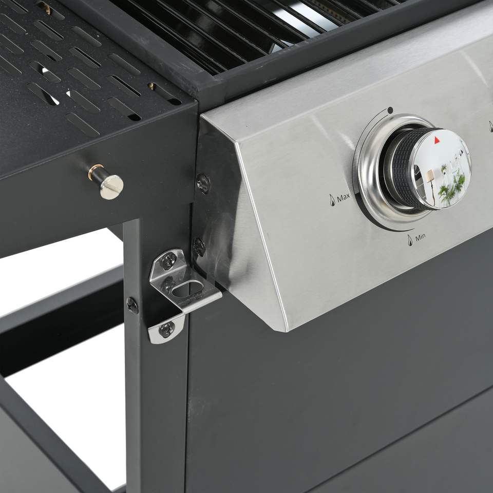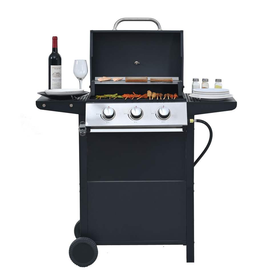 Propane Gas Grill 4-Burner Stainless Steel 34,000 BTU Patio Garden BBQ Two Shelves Lid Wheels Bottle Opener