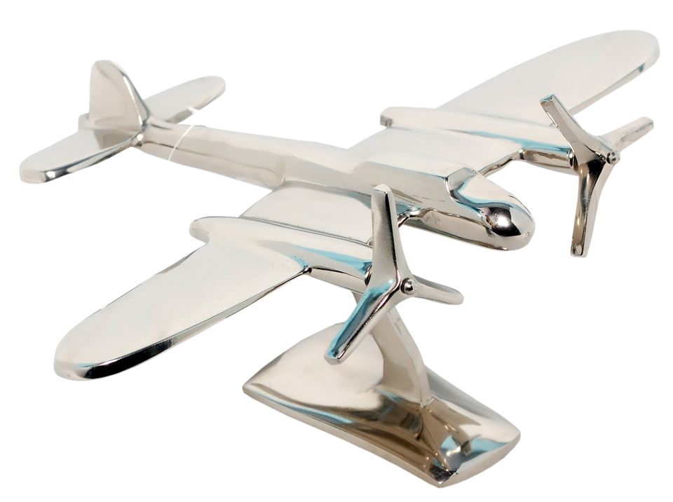 โมเดลเครื่องบินใบพัดพร้อมฐาน ขัดเงาอย่างดี ของตกแต่งงานฝีมือ เครื่องบินอลูมิเนียม ของขวัญส่งเสริมการขาย