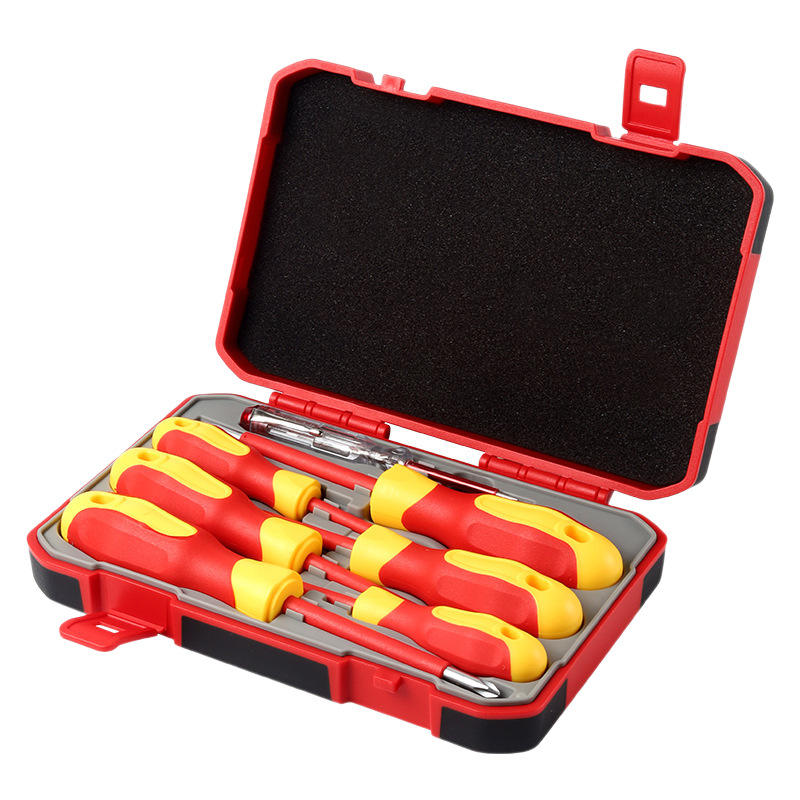 ชุดไขควงโปรสกิต 7 อิน 1 หัวแฉกแบบหุ้มฉนวนพร้อมด้ามจับกันลื่นสำหรับซ่อมแซมไฟฟ้าในครัวเรือนเครื่องมือ DIY