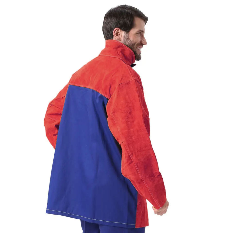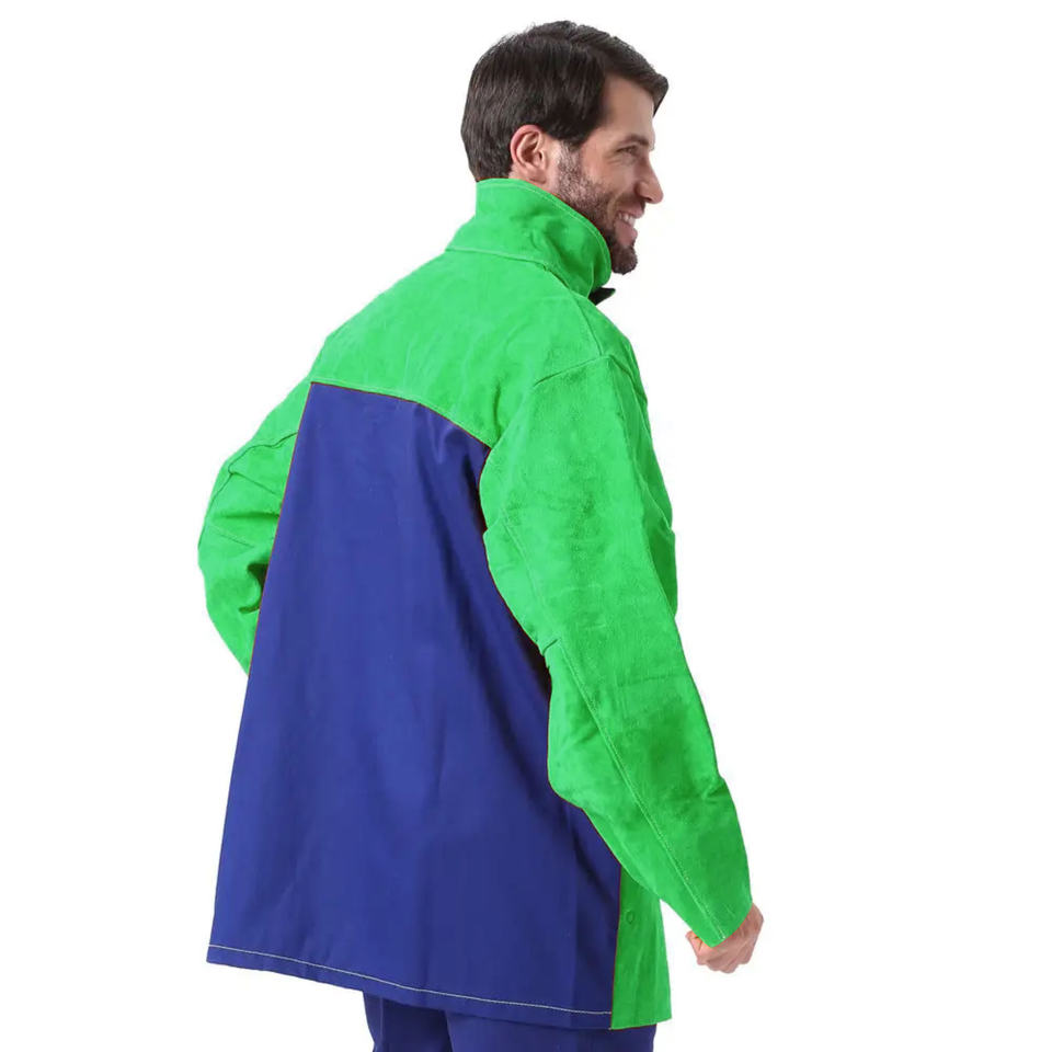 ออกแบบโลโก้ความปลอดภัยสำหรับอุปกรณ์ป้องกัน เสื้อแจ็คเก็ตหนังวัวแท้เกรดพรีเมียมสำหรับงานเชื่อม ป้องกันประกายไฟสำหรับงานอุตสาหกรรม
