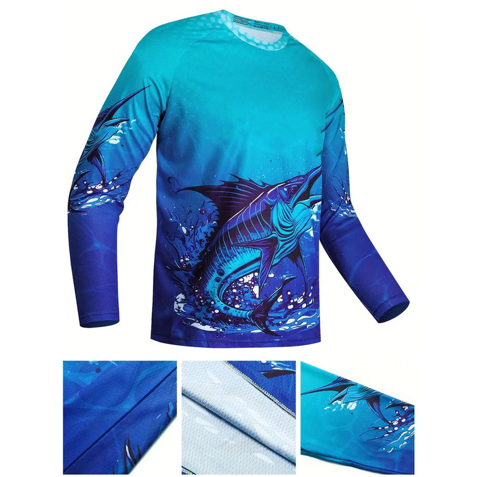 เสื้อ Upf50ตกปลาแขนยาวแห้งเร็ว, เสื้อตกปลาระบายอากาศได้ดีสำหรับผู้ชายเสื้อตกปลาป้องกันรังสียูวีแห้งเร็ว