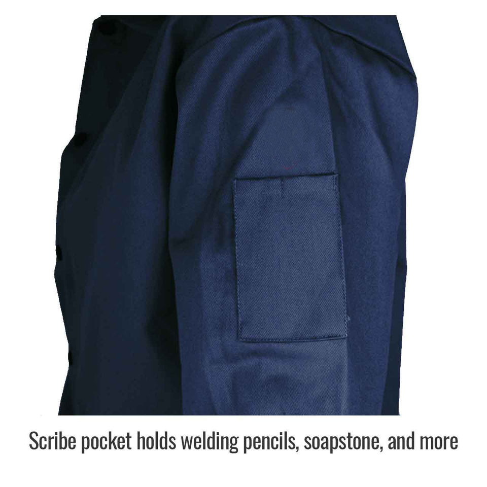 เสื้อเชื่อมป้องกันที่มีการปิดสแนปและซับในเหมาะสำหรับงานเชื่อมเจียรและงานหล่อ