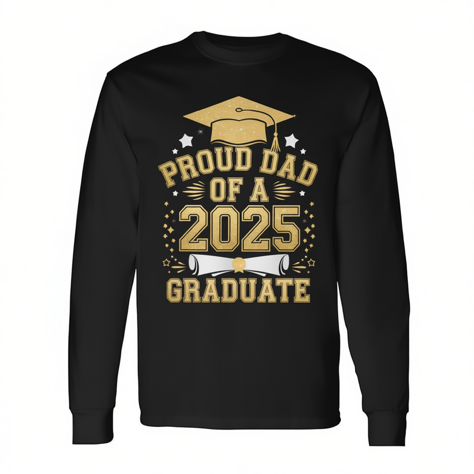 เสื้อยืดแขนยาวสำหรับบัณฑิตปี 2025 ของพ่อผู้ภาคภูมิใจ ของขวัญวันรับปริญญาสำหรับวันพ่อ