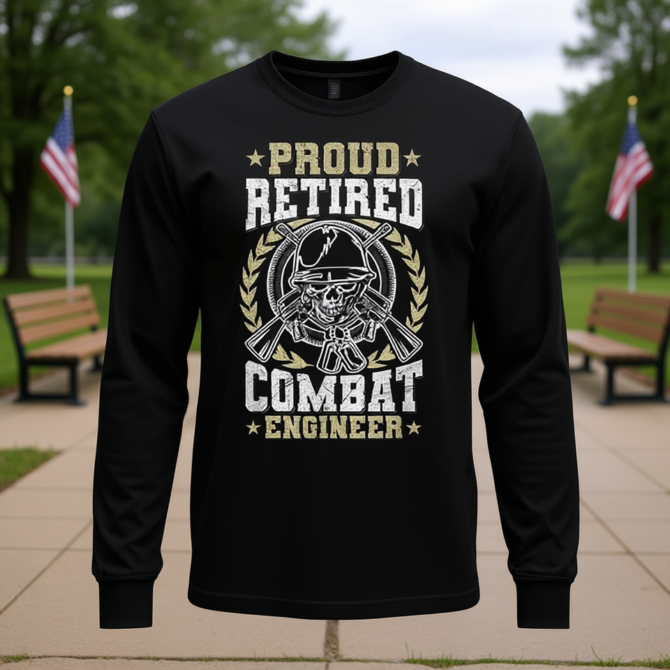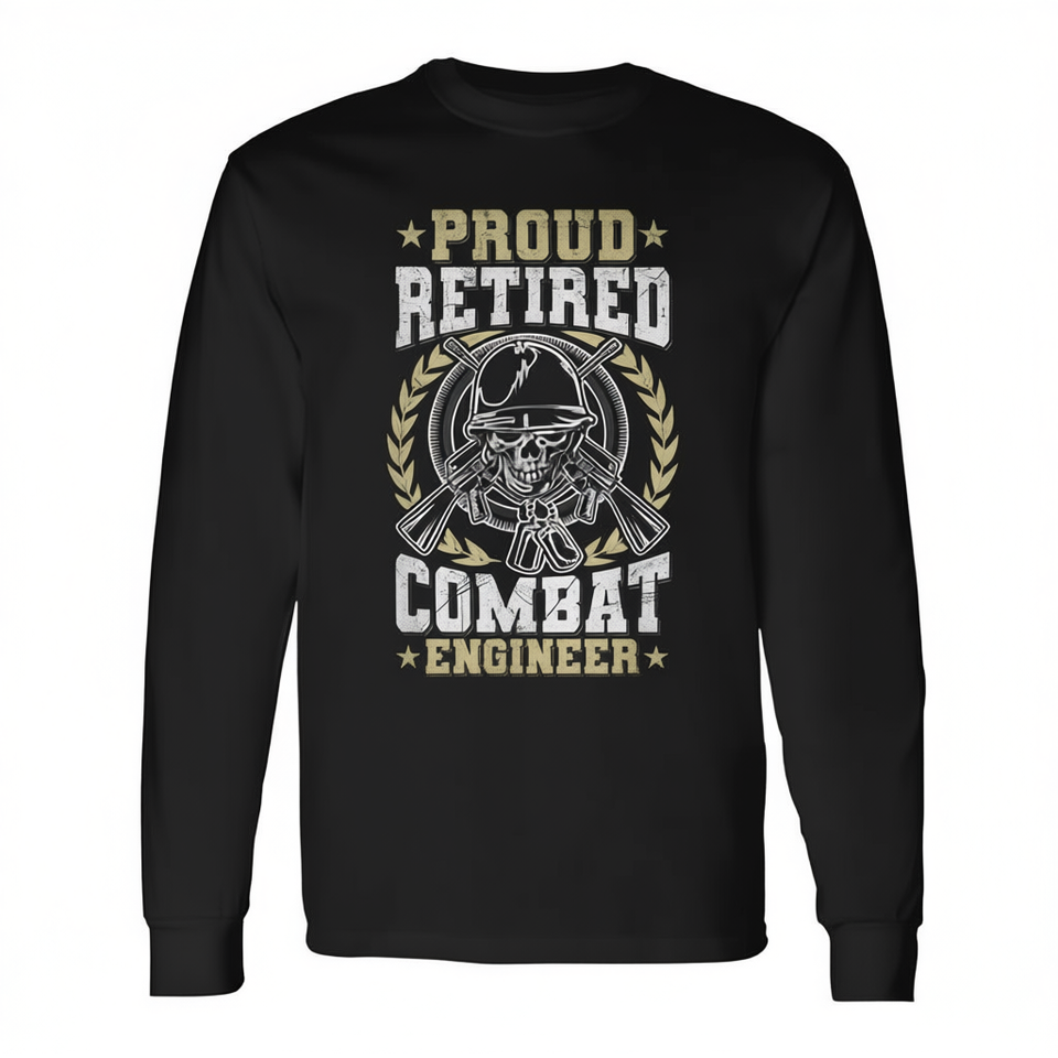 เสื้อยืดแขนยาววิศวกรทหารผ่านศึกผู้ภาคภูมิใจ ของขวัญทางการทหารสำหรับทหารผ่านศึก