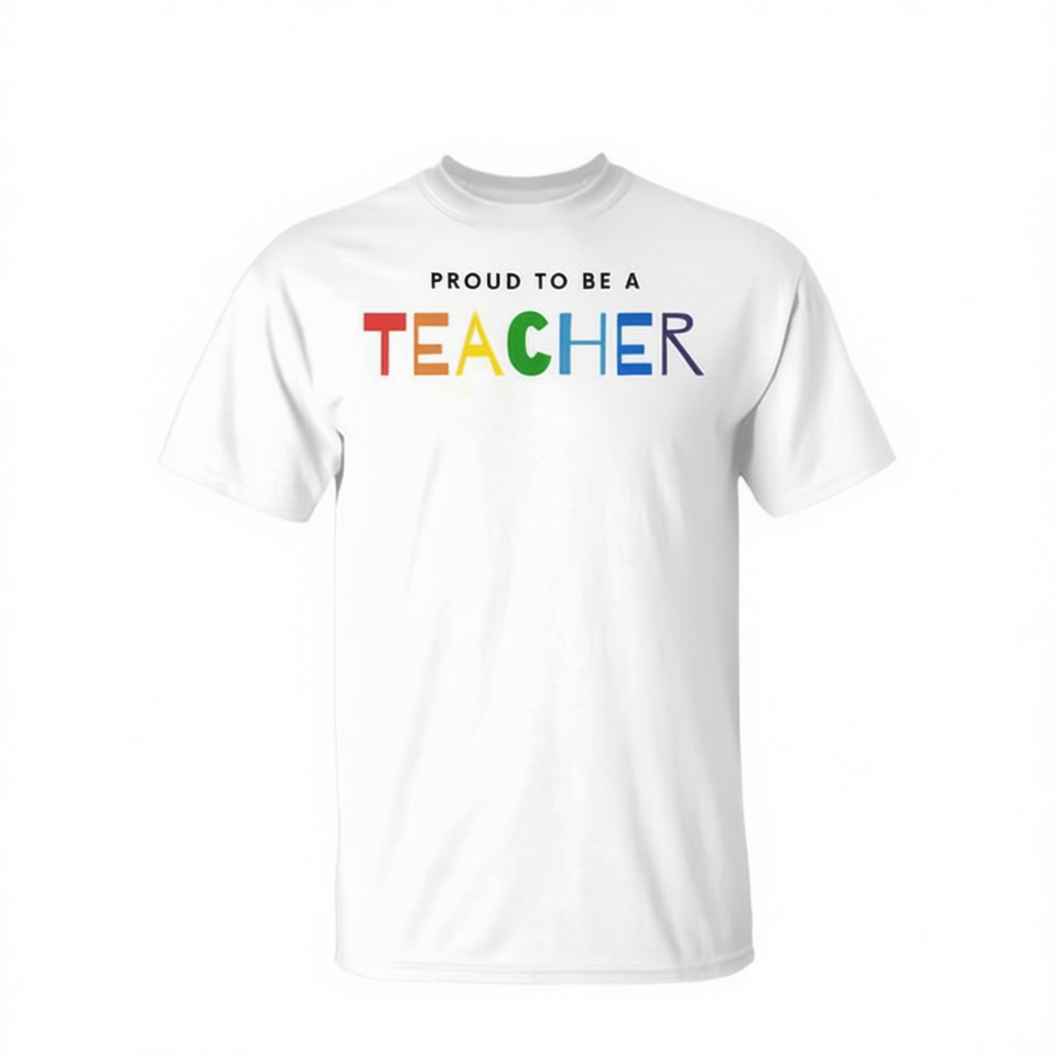 เสื้อยืดคอกลมแขนสั้น Proud To Be A Teacher สำหรับผู้ใหญ่ ใส่ได้ทั้งชายหญิง กลับไปโรงเรียน งานพิมพ์ซิลค์สกรีนสำหรับงานรับปริญญา