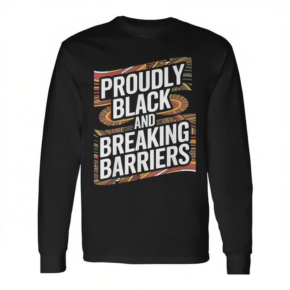 เสื้อยืดสีดำอย่างภาคภูมิใจและทำลายอุปสรรคแขนยาวข้อความเพิ่มขีดความสามารถ