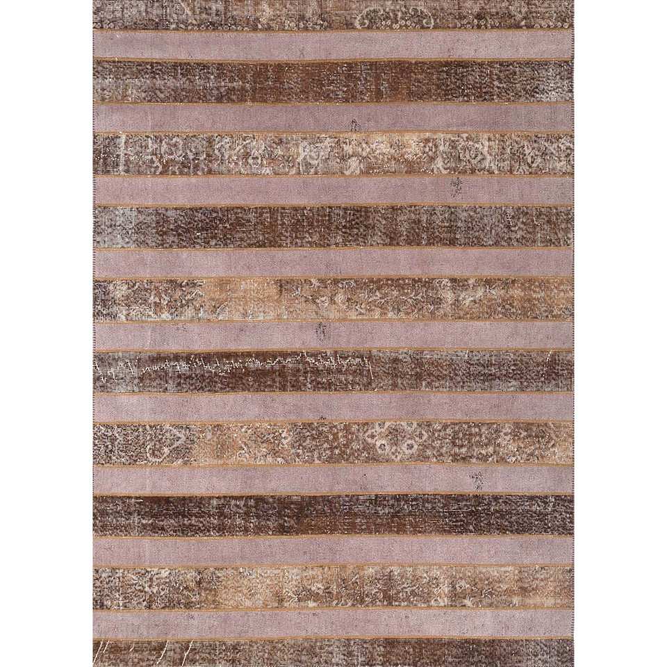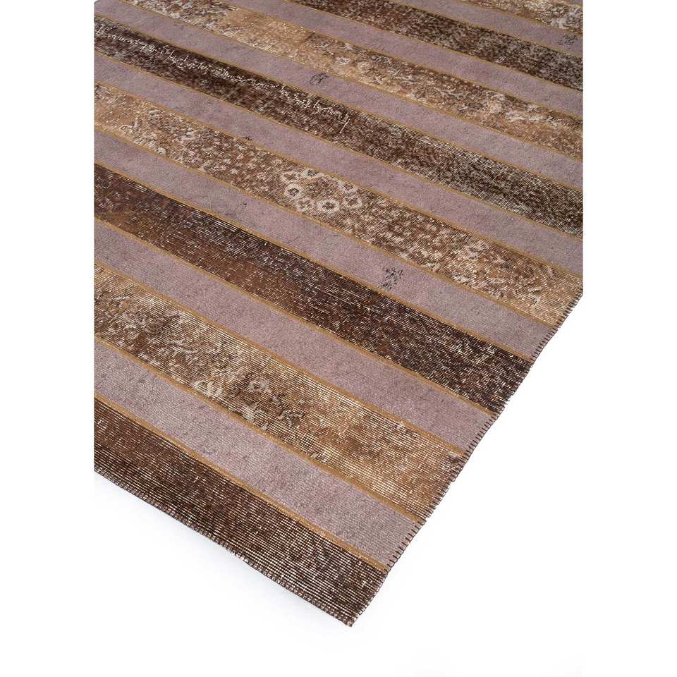 พรมขนสัตว์ถักมือลายทางสีเบจ-น้ำตาล รุ่น Pae-3508 สำหรับบ้าน รถยนต์ รูปทรงสี่เหลี่ยมผืนผ้า เหมาะสำหรับห้องนั่งเล่นและทางเดิน