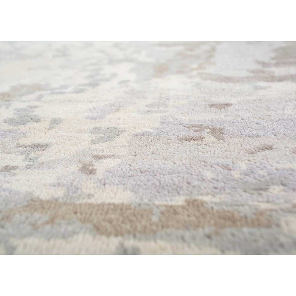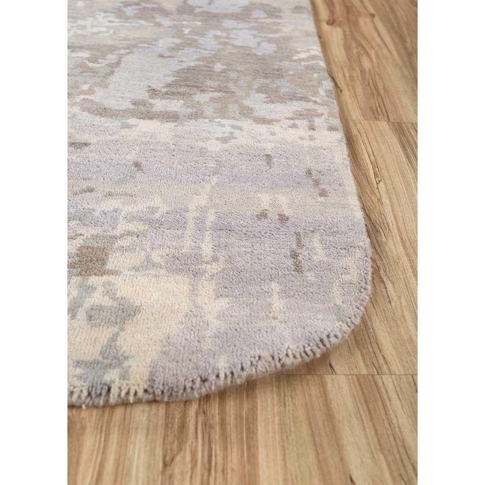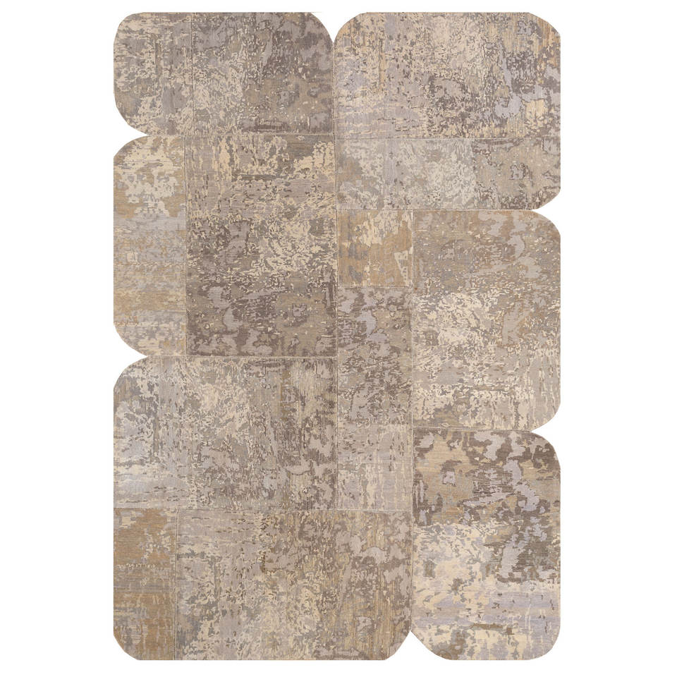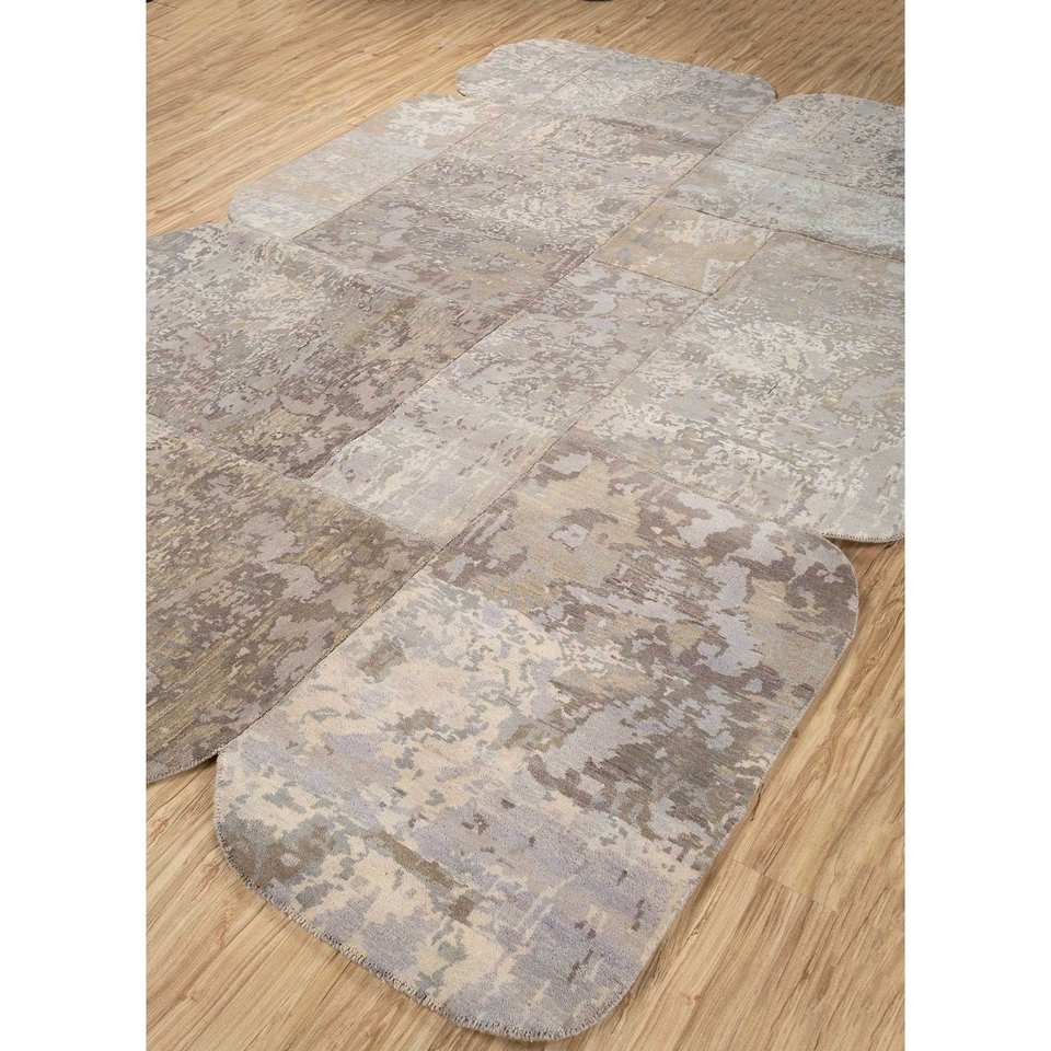 พรมขนสัตว์ถักมือลายปะติดสีเบจและสีน้ำตาลทรงสี่เหลี่ยมผืนผ้า ดีไซน์แบบจิ๊กซอว์ สำหรับห้องนั่งเล่น ห้องโถง รุ่น Pwc-920