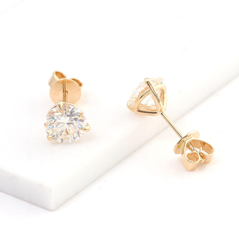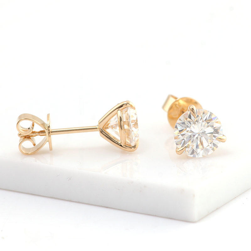 โปรเวนซ์ คลาสสิค แฟชั่นต่างหูเพชรทรงกลม 3 ขา ประดับทองคำขาว สำหรับผู้หญิง ของขวัญแต่งงาน เครื่องประดับ