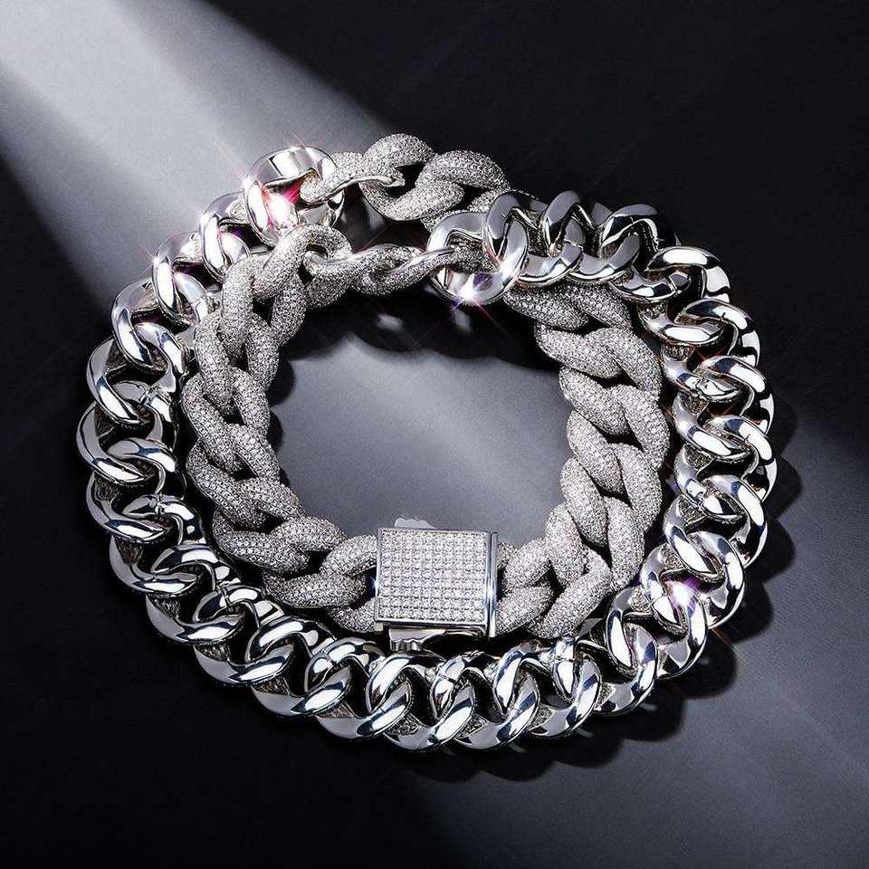 สร้อยคอแฟชั่นสไตล์ฮิปฮอปแบบคิวบันลิงค์ประดับเพชรโมอิสซาไนต์จากโพรวองซ์สำหรับแร็ปเปอร์