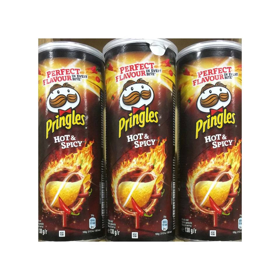 Prringles ชิปซ้อนกันร้อนและเผ็ดรสพริกที่มีประสิทธิภาพด้วยการกระทืบที่สมบูรณ์แบบและความร้อนเผ็ด
