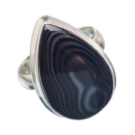 แหวนพลอย psilomelane ทรงสี่เหลี่ยมทรงลูกแพร์ทรงกลมทรงสี่เหลี่ยมพลอยอัญมณีธรรมชาติทรงหลังเบี้ย925เงินสเตอร์ลิง