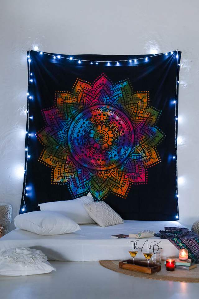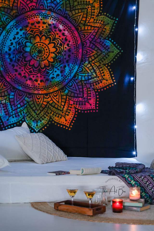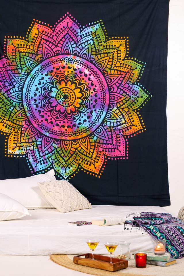 ม่านลายดอกแขวนผนังสไตล์โบฮีเมียนลายแมนดาลาที่ทำให้เคลิบเคลิ้มชาวฮิปปี้ยิปซีโบฮีเมียนผ้าคลุมเตียงชายหาดที่สวยงาม