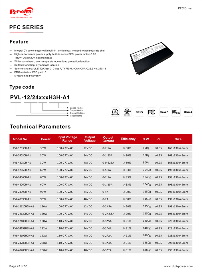 ชื่อผลิตภัณฑ์:PVL-12150H-A1 PVL-24150H-A1