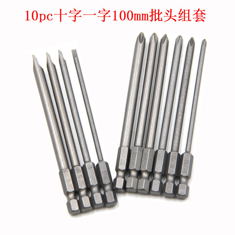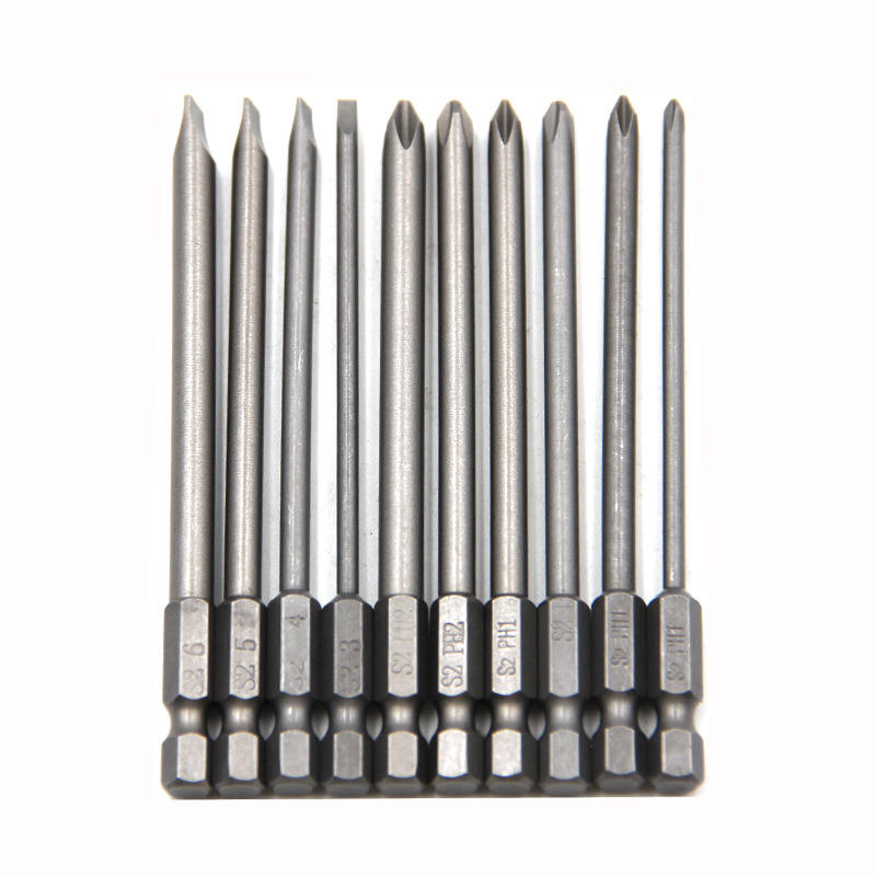 Pt071 ชุดดอกไขควงหัวแฉกและหัวแบน 10 ชิ้น ขนาด 100 มม. แบบแม่เหล็ก สำหรับงานซ่อมแซม DIY