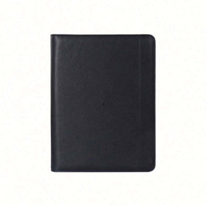 สมุดบันทึกหนัง PU A4 มัลติฟังก์ชั่น พร้อมที่ชาร์จแบตสำรอง 8000 mAh คลิปหนีบสำหรับผู้จัดการ ของขวัญสำหรับธุรกิจ/สำนักงาน สมุดบันทึกที่อยู่แบบกำหนดเอง สีดำ