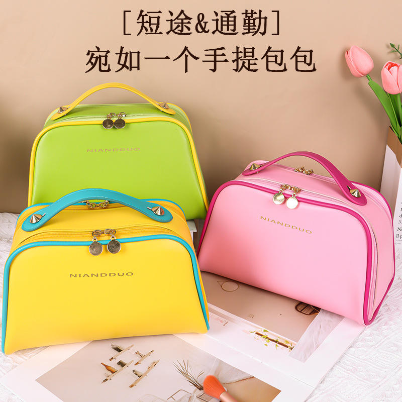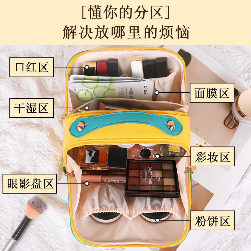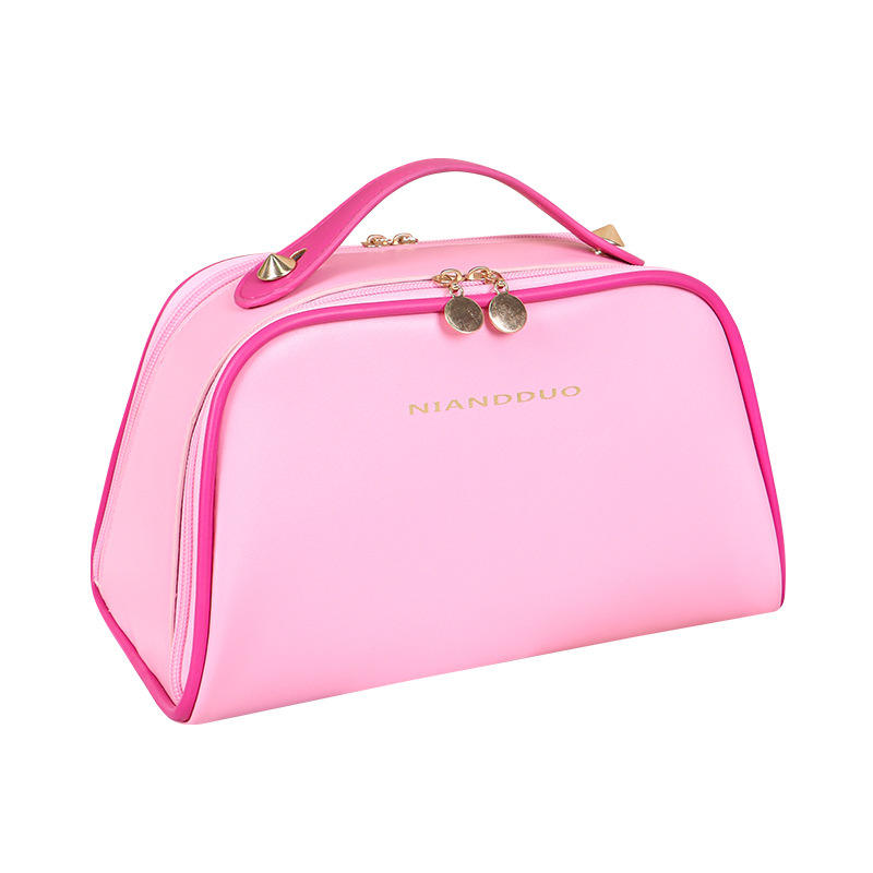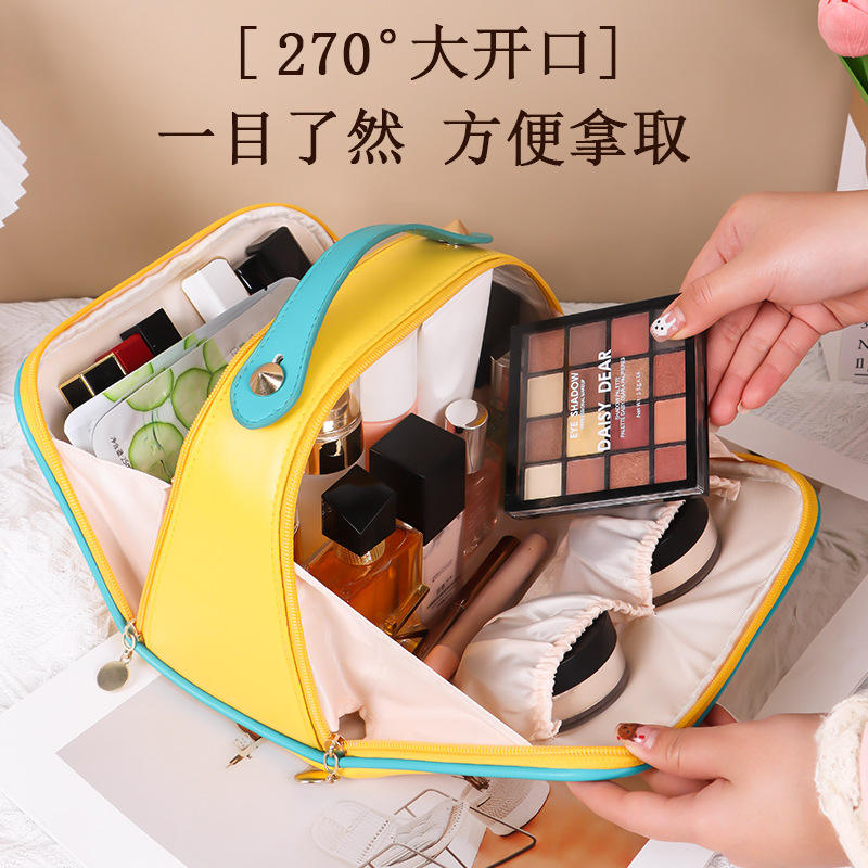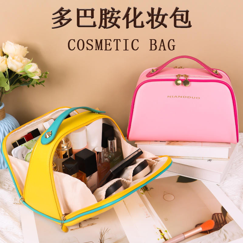 กระเป๋าเครื่องสำอางหนัง Pu ความจุขนาดใหญ่เปิดได้สองด้านแบบพกพา มีสไตล์ สีสันสดใสสำหรับจัดเก็บในบ้าน
