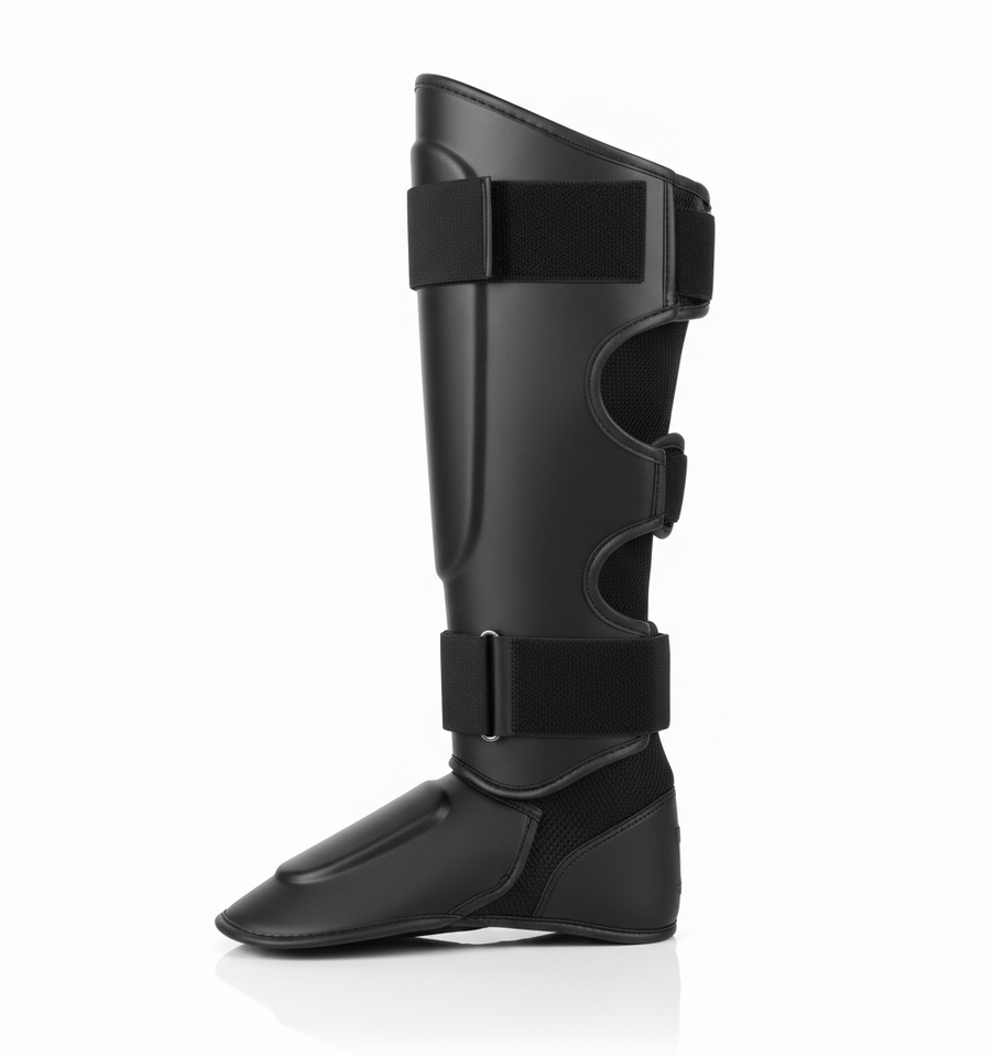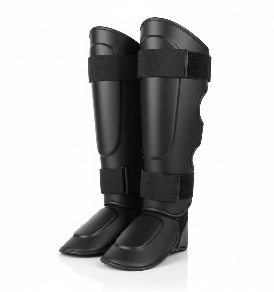 สนับแข้งหนัง PU ปักโลโก้ได้ตามต้องการ สำหรับคิกบ็อกซิ่ง มวยไทย ป้องกันขาและเท้า