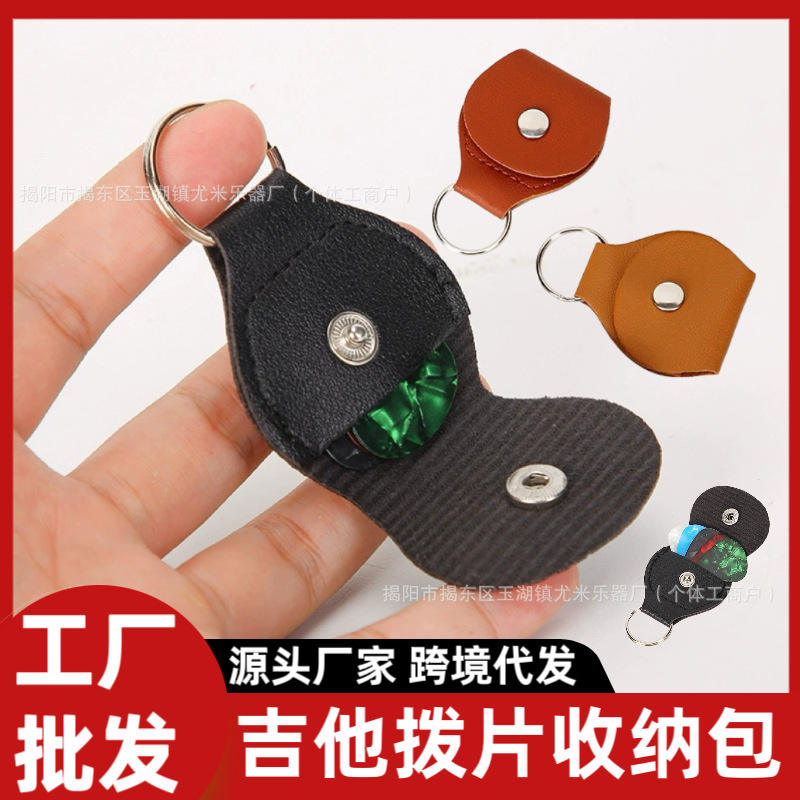 กระเป๋าใส่ปิ๊กกีตาร์หนัง PU รูปวงรี พวงกุญแจแบบพกพา กระเป๋าใส่ปิ๊ก อุปกรณ์เสริมเครื่องดนตรี