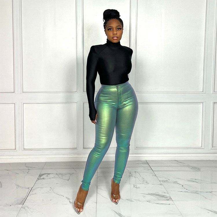 กางเกงสกินนี่หนัง Pu สำหรับผู้หญิง,เสื้อผ้าแฟชั่นแนวสตรีทกางเกงลำลองสีลูกกวาดสำหรับงานปาร์ตี้คลับแวร์