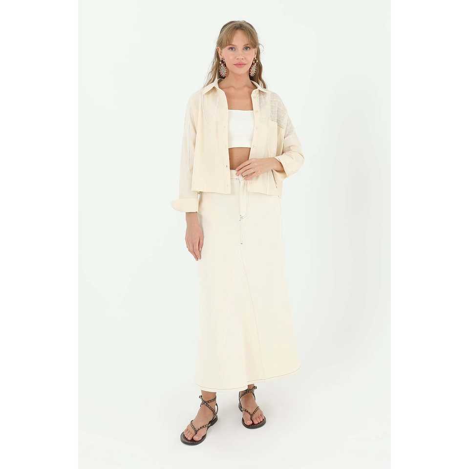 กระโปรงยีนส์เอวสูงผู้หญิงพวน ใส่สบาย รุ่น 18186ETK