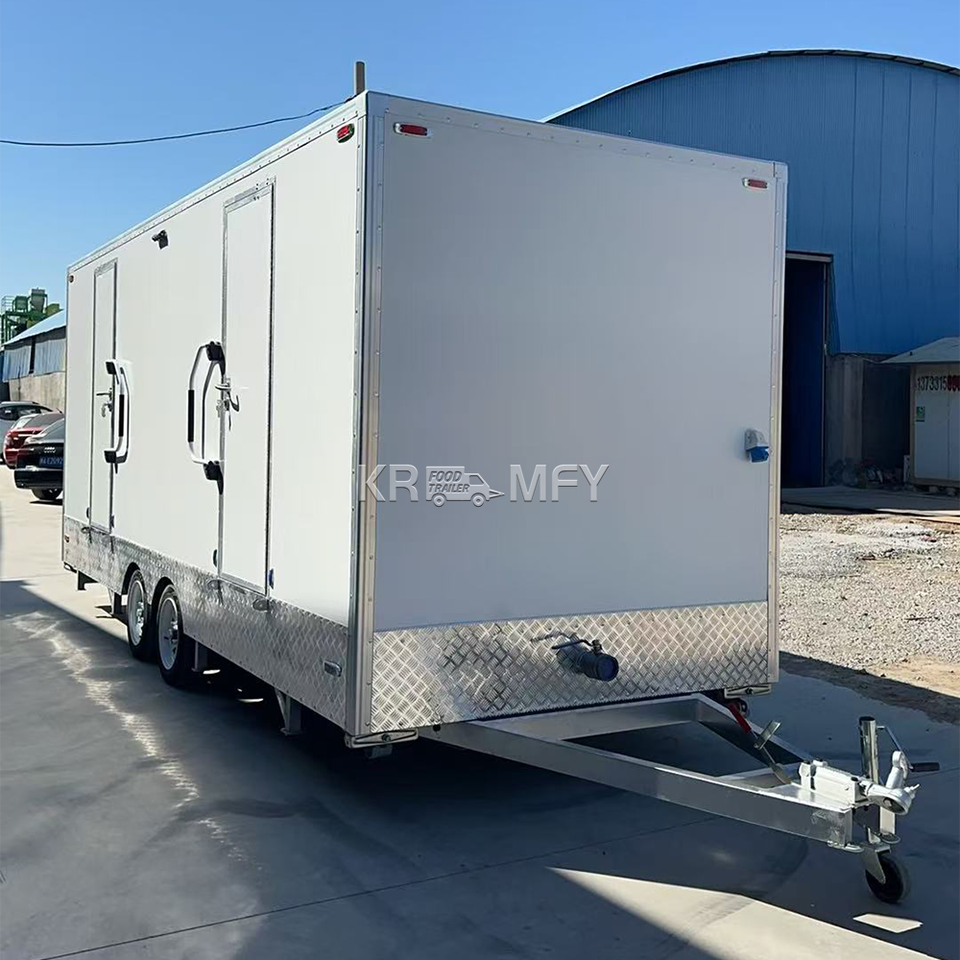 ห้องน้ำเคลื่อนที่สาธารณะ 2 ห้อง พร้อมฝักบัวอาบน้ำ ห้องน้ำเคลื่อนที่แบบหรูหรา VIP รถพ่วงห้องน้ำเคลื่อนที่ ห้องน้ำแบบพกพา