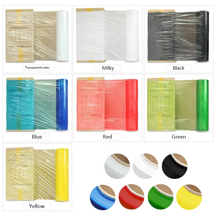 ฟิล์มยืดหด PE/LLDPE สีสำหรับอาหารเกรดโซ่เย็นพลาสติกยืดหดได้ฟิล์มห่อบรรจุภัณฑ์ขนาด20ไมครอน