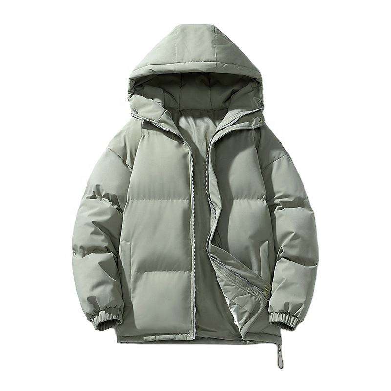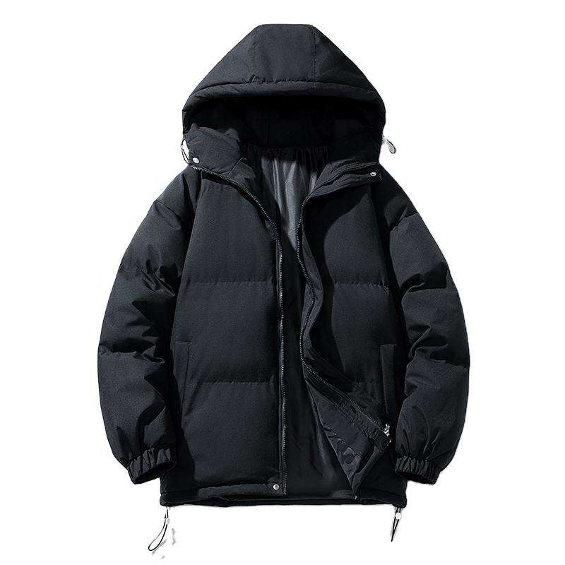 เสื้อโค้ทผ้าฝ้ายบุฟองน้ำสีดำสำหรับผู้ชายเสื้อแจ็กเก็ตพัฟออกแบบโลโก้ได้ตามต้องการสำหรับฤดูหนาว