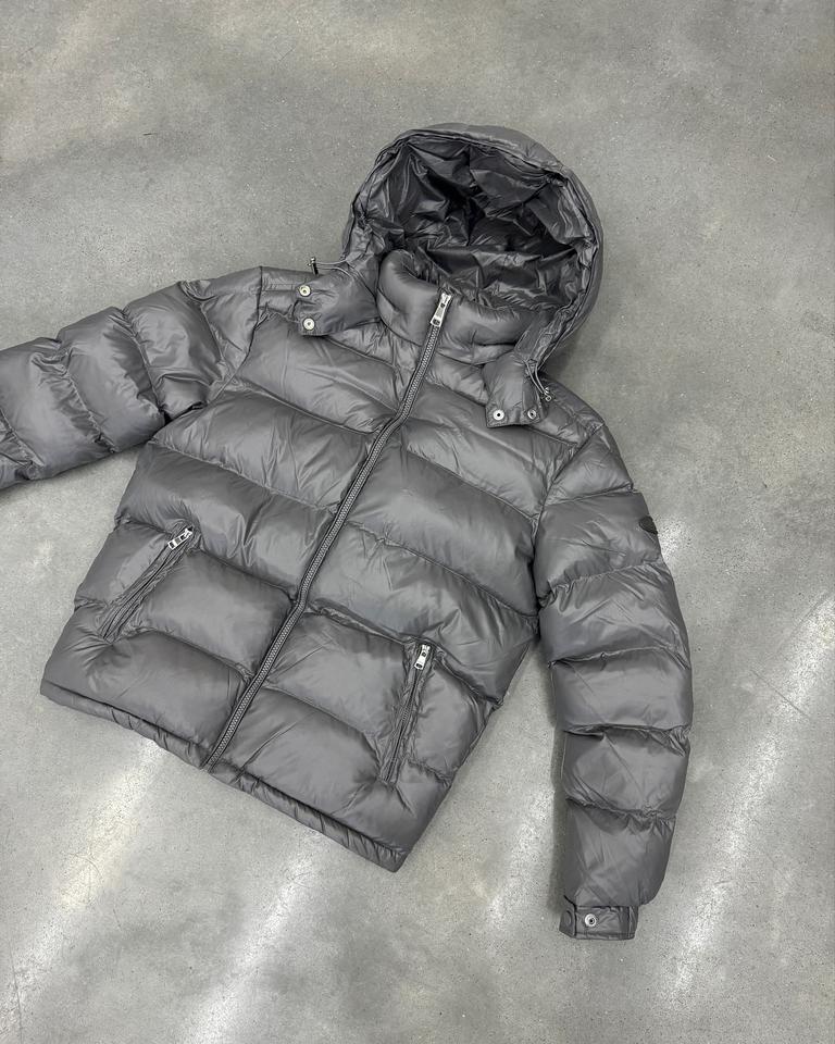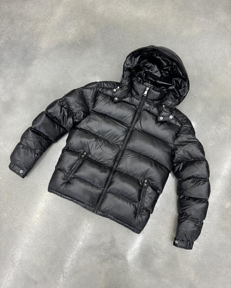เสื้อโค้ทพัฟเฟอร์แบบโอเวอร์ไซส์ สีดำ สำหรับผู้ชาย แบบมันเงา มีกระเป๋าที่แขนเสื้อ บุด้วยขนเป็ด เหมาะสำหรับฤดูหนาว