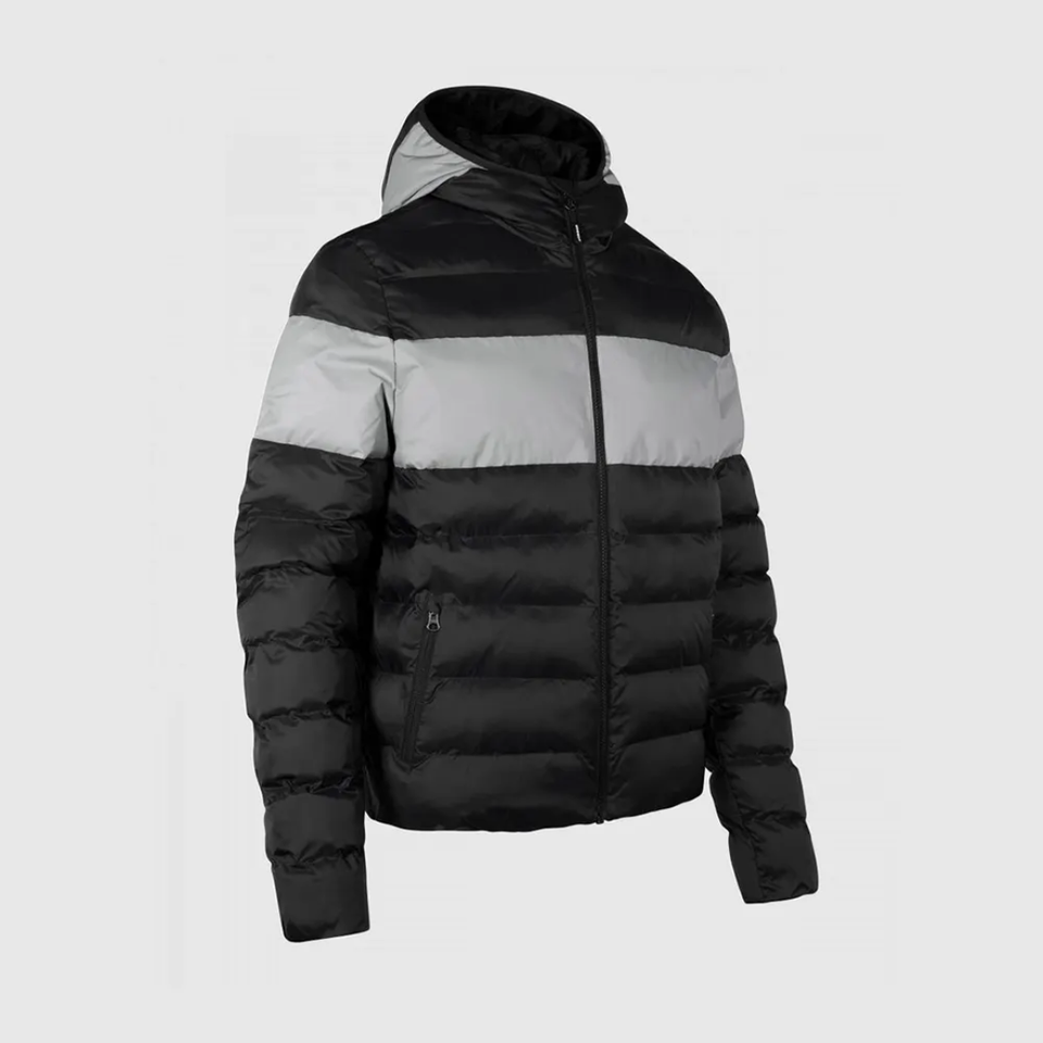 เสื้อแจ็คเก็ตพัฟเฟอร์แบบมีโลโก้สั่งทำพิเศษสำหรับฤดูหนาว ผู้ชาย เนื้อผ้ามันเงา อุ่น กันน้ำ กันลม แบบมีซับใน พร้อมกางเกงในราคาประหยัด