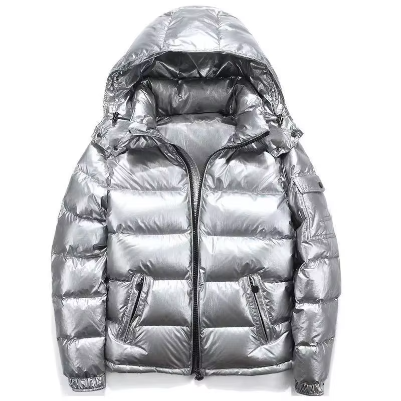 เสื้อแจ็คเก็ตพัฟเฟอร์บุหนาสำหรับผู้ชาย กันน้ำ ระบายอากาศ กันลม มีฮู้ด รุ่นปี 2024 สำหรับฤดูหนาว ด้านหน้าปรับแต่งได้ สไตล์ลำลอง ผลิตจากโพลีเอสเตอร์ถัก