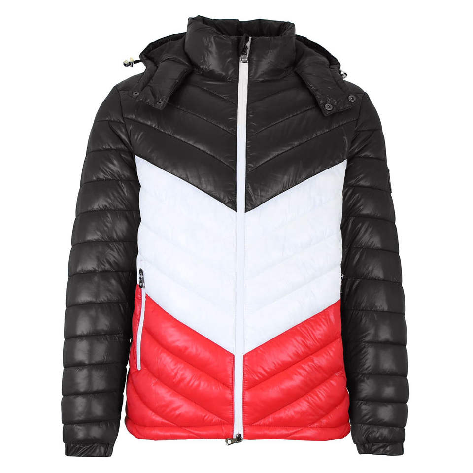 เสื้อแจ็คเก็ตพัฟเฟอร์สีดำเงาสำหรับผู้ชาย คอลเลคชั่นฤดูหนาว 2024 สไตล์สตรีทแวร์ คอตั้งถักแบบปรับแต่งได้ด้านหน้า กันน้ำ เป็นมิตรกับสิ่งแวดล้อม